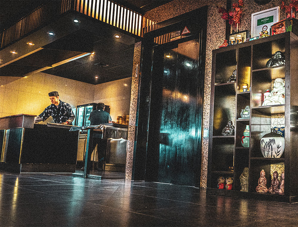 Op de tweede etage bevindt zich de Japanse lounge, die in een gerenoveerd pand een modern uiterlijk heeft gekregen. Naast onze ouderwetse open Teppanyaki keuken hebben we een Sushibar toegevoegd.