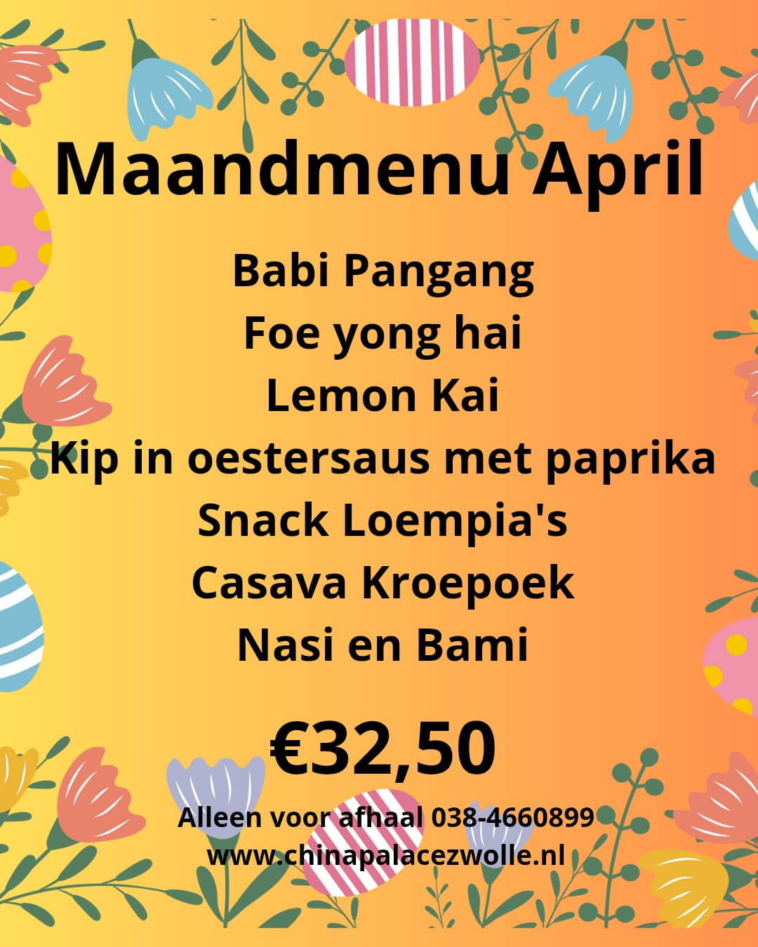 Elke maand presenteren we een nieuw, smakelijk maandmenu, speciaal samengesteld voor 3 volwassenen! Geniet van een gevarieerde, heerlijke Chinese maaltijd, perfect voor een gezellige avond thuis.